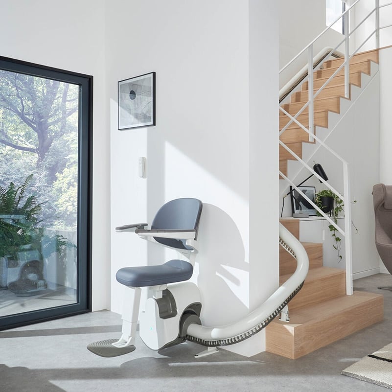 The Freecurve is a highly versatile curved stairlift designed for complex staircases and tight spaces. Key features: